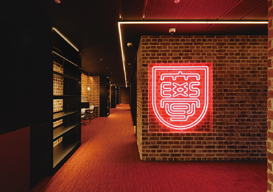 イギリス建築といえば、岩やレンガを用いた温かみのあるデザインが魅力です。その伝統的なスタイルに、日本産の木材や座敷の要素を組み合わせ、和の文化を取り入れた新しいキャンパスが誕生しました。天王洲は、メトロシティ東京と羽田空港をつなぐウォーターフロントの結節点。英国エセックス大学とSAK Universityを結ぶ拠点として、まさにふさわしい地に生まれた学びの空間です。